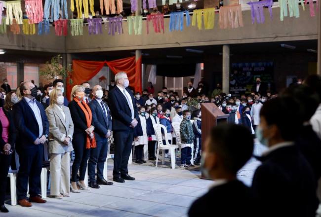 El mecanismo de diálogo ha sido clave en cada escuela. Esta escuela se ha preparado con su directora, Ramona, y todo el cuerpo docente. Nosotros estuvimos antes del inicio de clases viendo el Plan Integral de Reparación de Edificios Escolares que impulsa el gobernador, Osvaldo Jaldo, y hemos entregado libros que son para estudiar Lengua y Matemáticas. Hoy esta escuela es el símbolo de una política nacional», valoró.