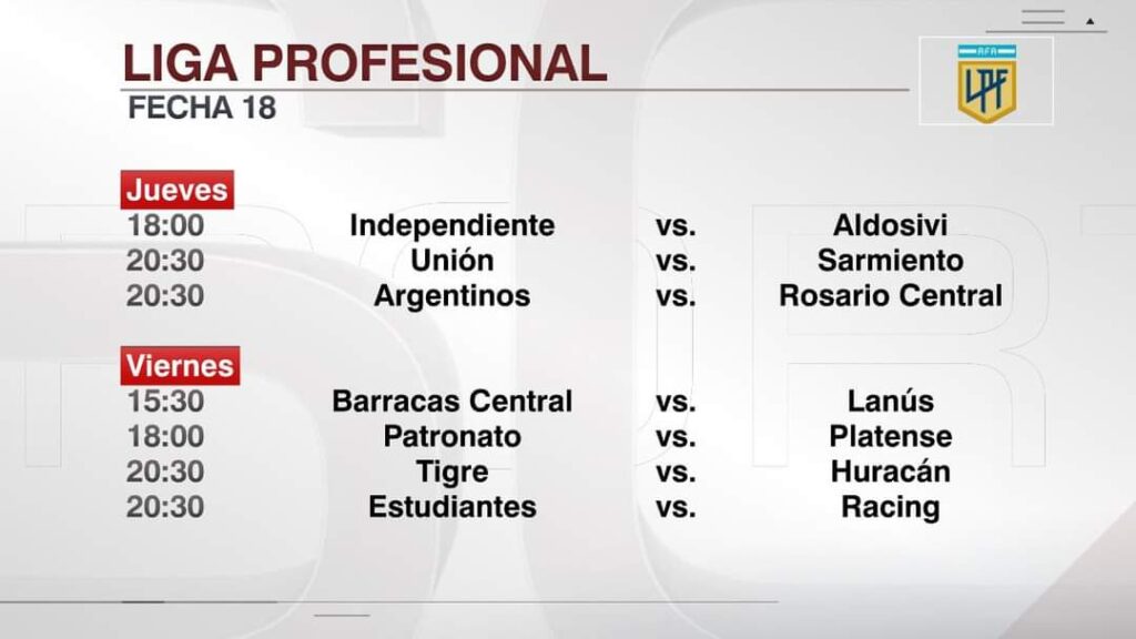 El día Jueves dará inicio la fecha numero 18 de la Primera División del Futbol Argentino, que por el momento encabezan Atlético Tucumán y Gimnasia de la Plata